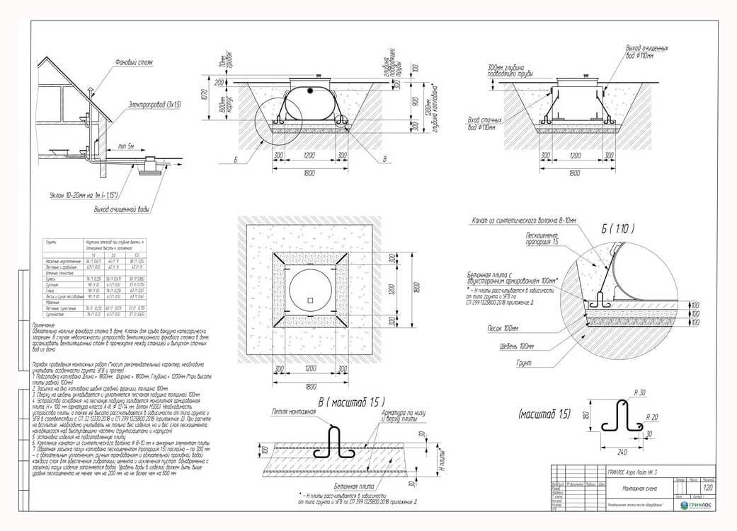 Перед непосредственным монтажом Гринлос Аэро Лайт НК специалисты осуществляют подготовку котлована. Его размеры определяются конструктивными особенностями выбранной модели оборудования. Ознакомиться с данными параметрами можно в приложении к ПС.