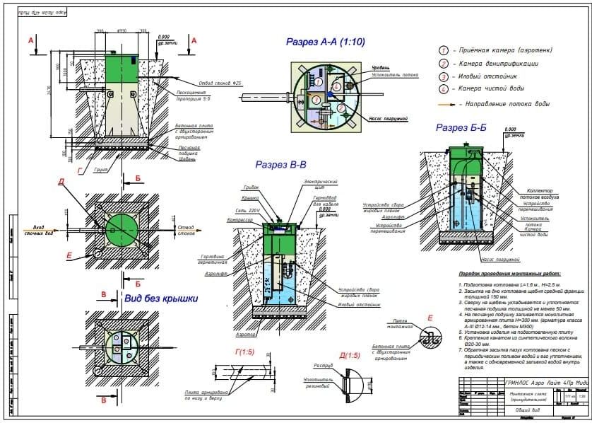 Монтаж септика Гринлос Аэро Лайт 4 Пр Миди