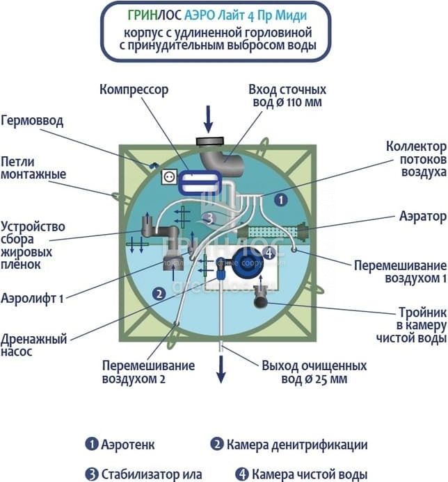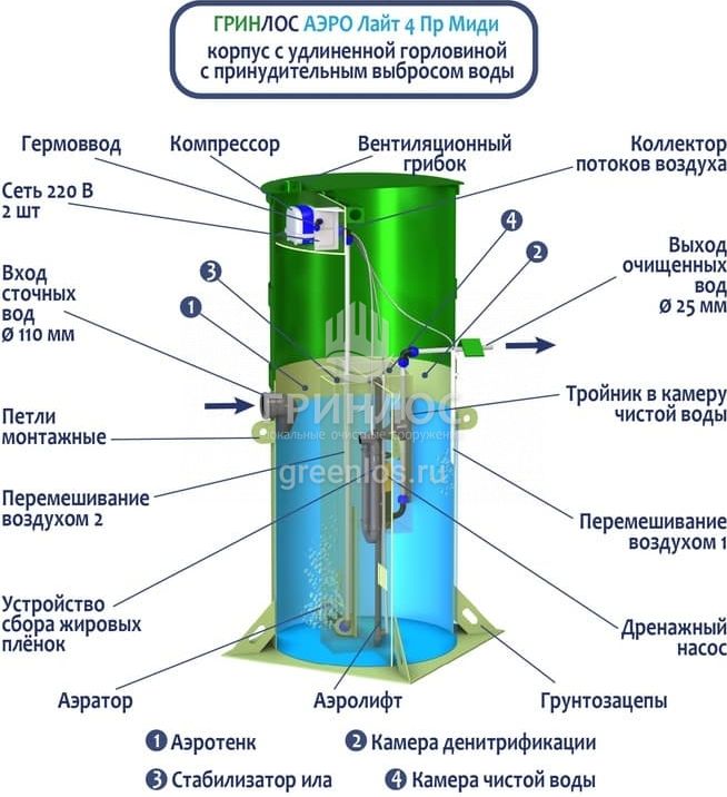 Модификации септика Гринлос Аэро Лайт 4 Пр Миди