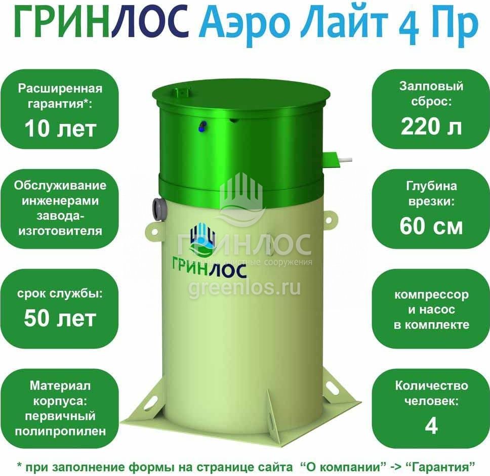 Модификации септика Гринлос Аэро Лайт 4 Пр
