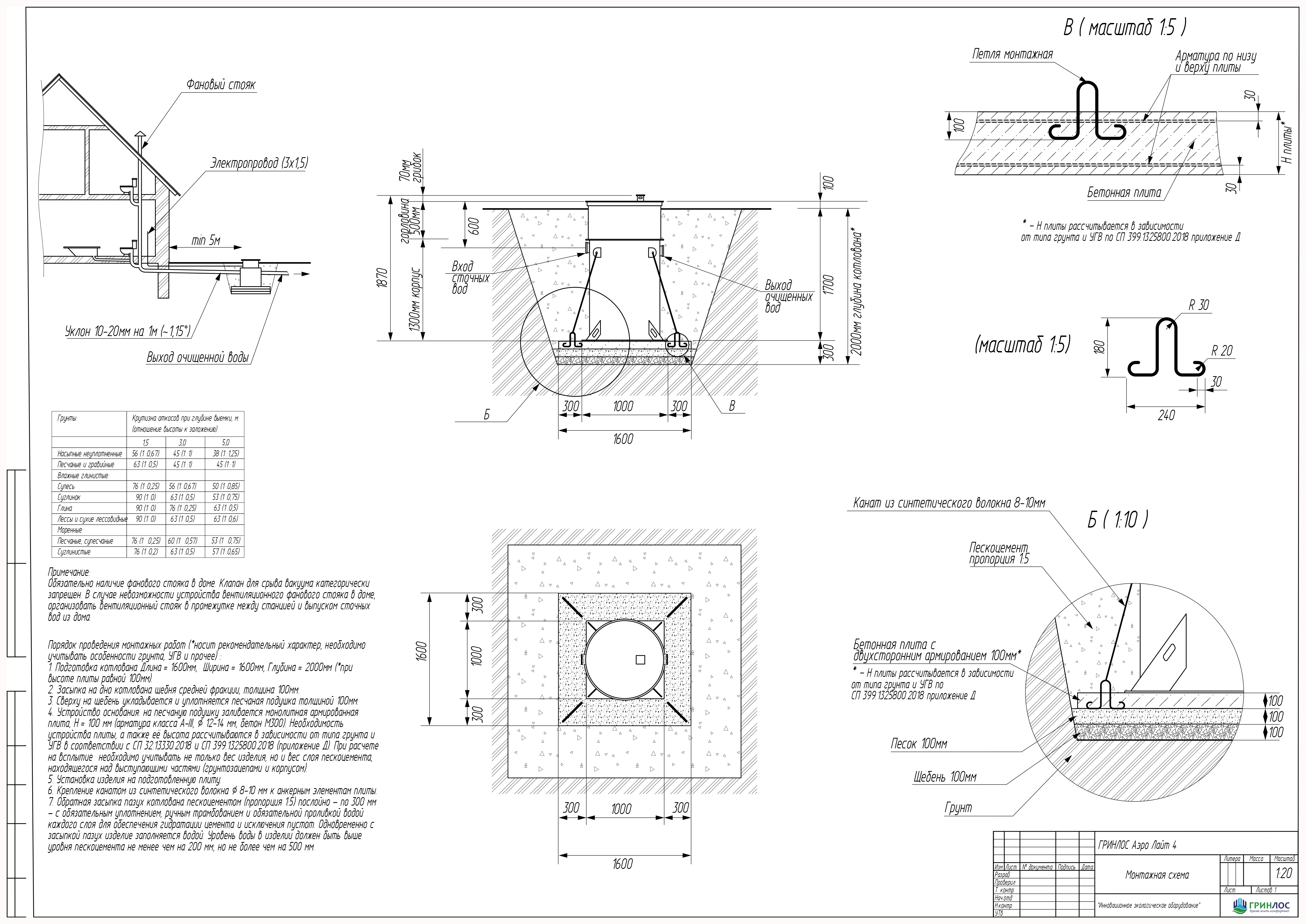 Перед непосредственным монтажом Гринлос Аэро Лайт 4 специалисты осуществляют подготовку котлована. Его размеры определяются конструктивными особенностями выбранной модели оборудования. Ознакомиться с данными параметрами можно в приложении к ПС.