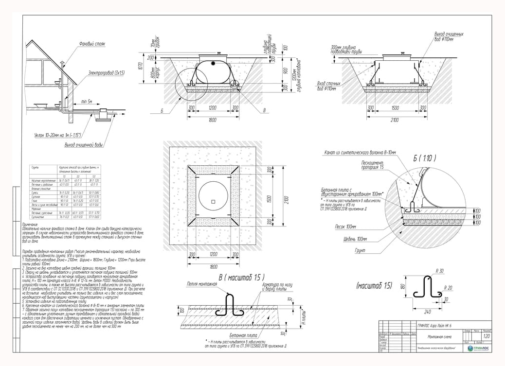 Перед непосредственным монтажом Гринлос Аэро Лайт НК специалисты осуществляют подготовку котлована. Его размеры определяются конструктивными особенностями выбранной модели оборудования. Ознакомиться с данными параметрами можно в приложении к ПС.