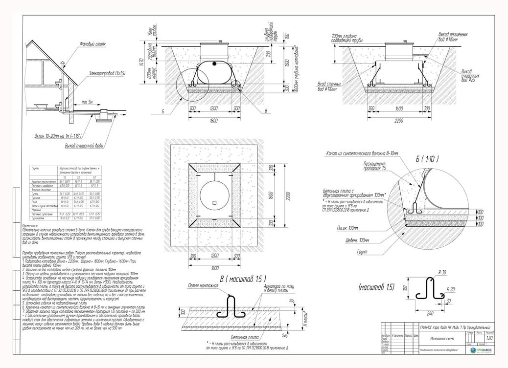 Перед непосредственным монтажом Гринлос Аэро Лайт Пр НК специалисты осуществляют подготовку котлована. Его размеры определяются конструктивными особенностями выбранной модели оборудования. Ознакомиться с данными параметрами можно в приложении к ПС.