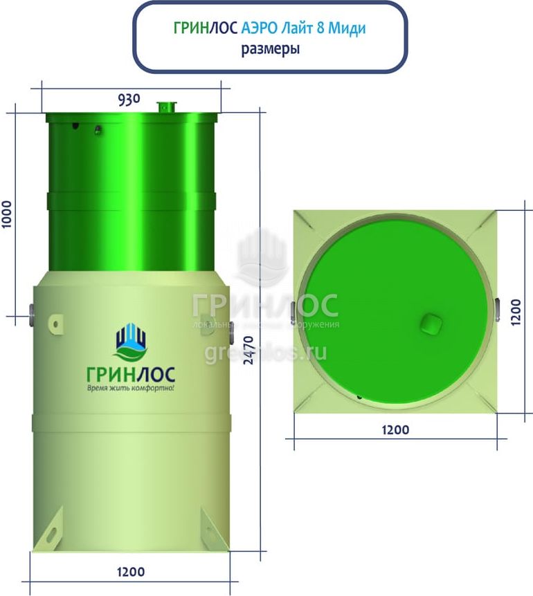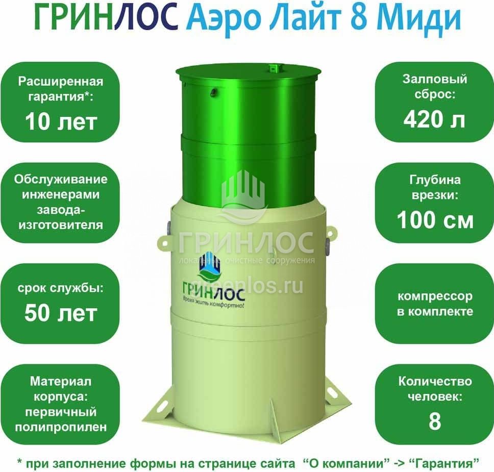 Отличительными особенностями септика Гринлос Аэро Лайт 8 Миди являются: