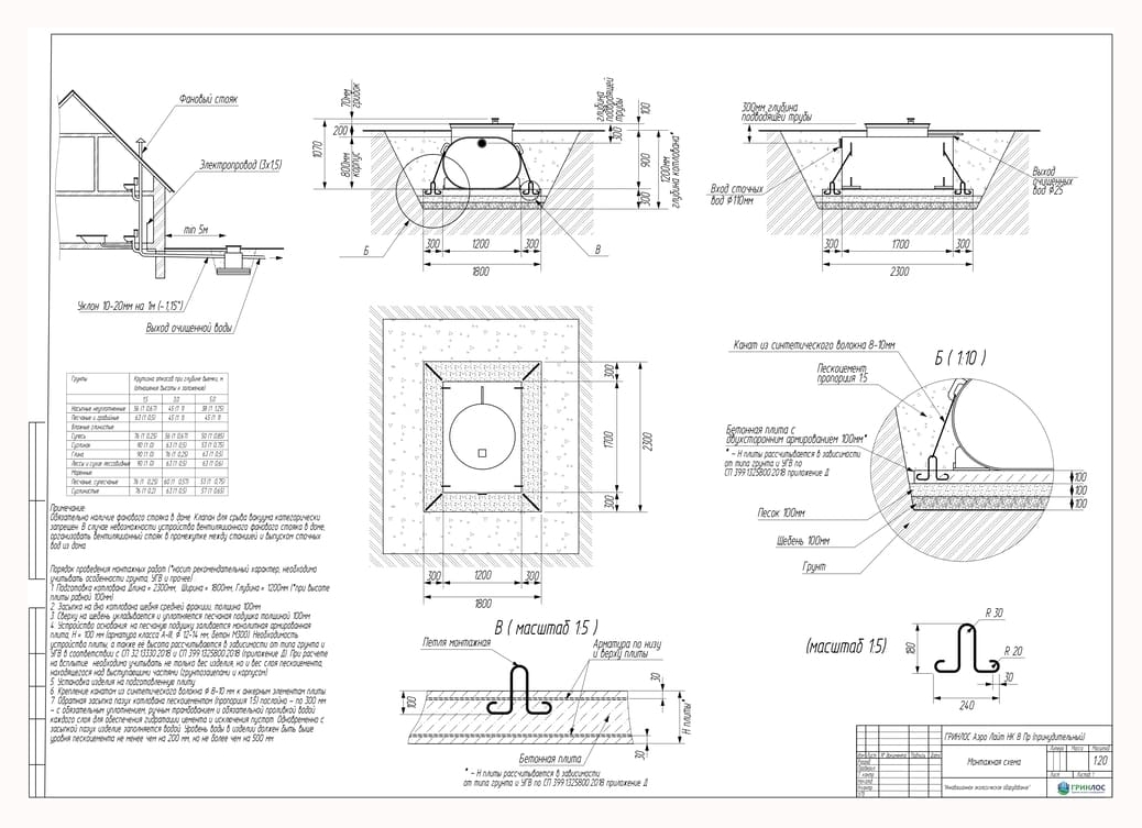 Перед непосредственным монтажом Гринлос Аэро Лайт Пр НК специалисты осуществляют подготовку котлована. Его размеры определяются конструктивными особенностями выбранной модели оборудования. Ознакомиться с данными параметрами можно в приложении к ПС.