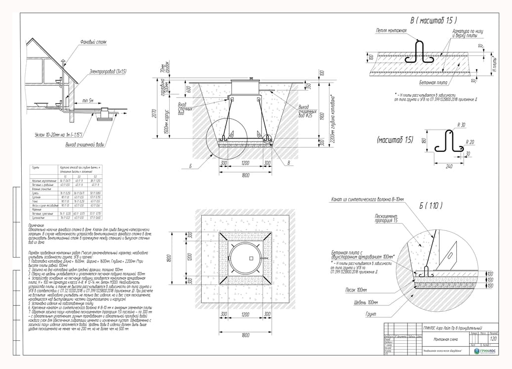 Перед непосредственным монтажом Гринлос Аэро Лайт 8 ПР специалисты осуществляют подготовку котлована. Его размеры определяются конструктивными особенностями выбранной модели оборудования. Ознакомиться с данными параметрами можно в приложении к ПС.