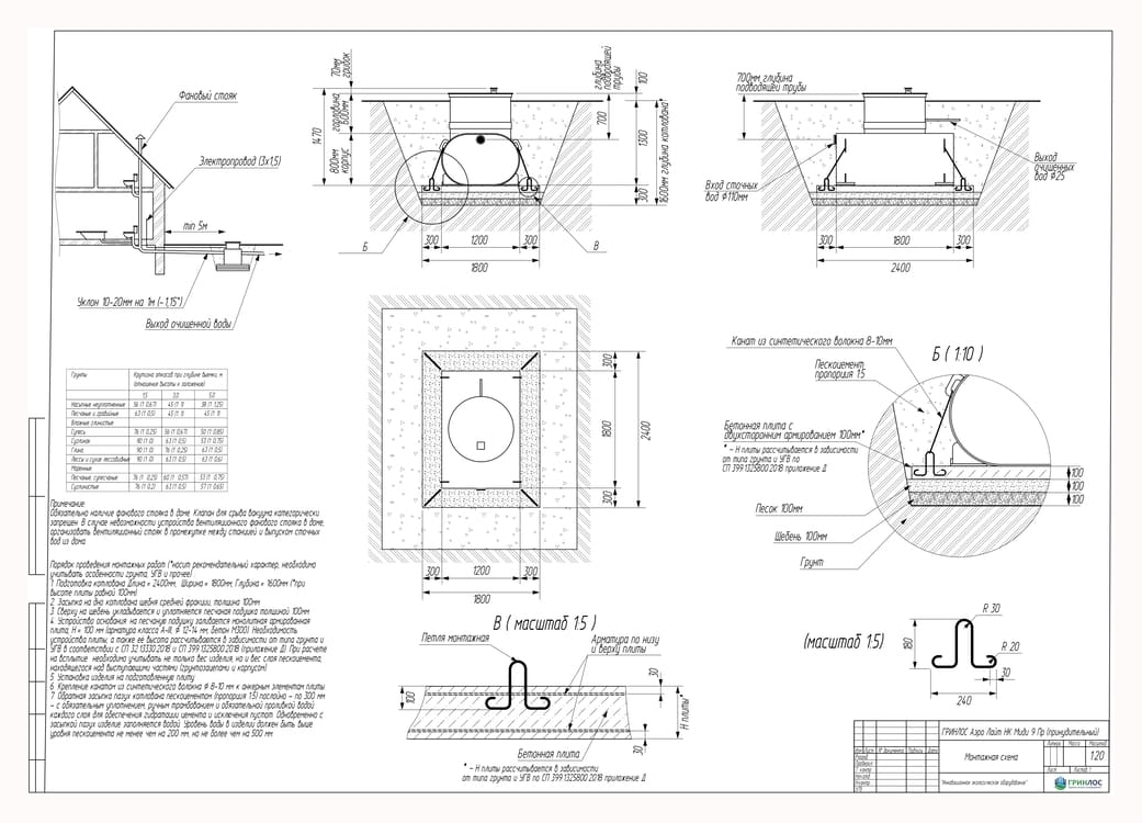 Перед непосредственным монтажом Гринлос Аэро Лайт Пр НК специалисты осуществляют подготовку котлована. Его размеры определяются конструктивными особенностями выбранной модели оборудования. Ознакомиться с данными параметрами можно в приложении к ПС.