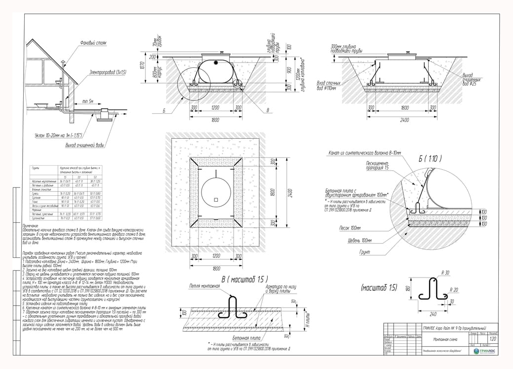 Перед непосредственным монтажом Гринлос Аэро Лайт Пр НК специалисты осуществляют подготовку котлована. Его размеры определяются конструктивными особенностями выбранной модели оборудования. Ознакомиться с данными параметрами можно в приложении к ПС.