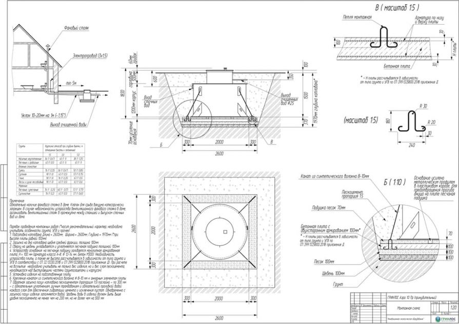 Целесообразно доверить выбор и монтаж оборудования специализированной компании. Перед непосредственным монтажом Оборудования специалисты осуществляют подготовку котлована. Его размеры определяются конструктивными особенностями выбранной модели оборудования. Ознакомиться с данными параметрами можно в приложении к ПС. По боковым стенкам корпуса должно быть сохранено свободное расстояние до грунта не менее 250 мм. Дно котлована нуждается в более тщательной подготовке. Его подвергают выравниванию с последующей засыпкой слоем песка, обладающим толщиной в пределах 10-15 см. Пазухи котлована подвергают обратной засыпке при помощи песка, который послойно поливают водой. Прежде чем приступить к аналогичным работам, емкость оборудования на четверть заполняют водой. Впоследствии количество воды внутри емкости увеличивают соразмерно уровню засыпки песком наружных стенок. Каждые 200 мм песка подвергаются ручному уплотнению.