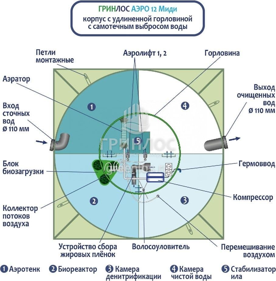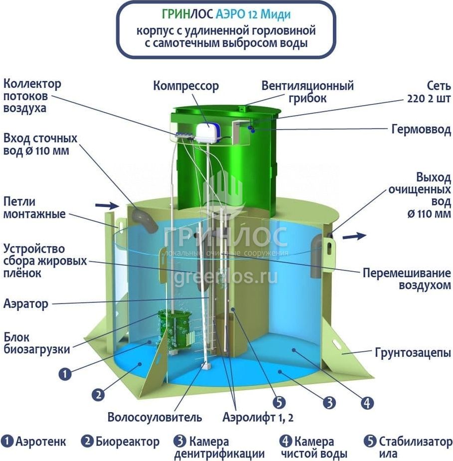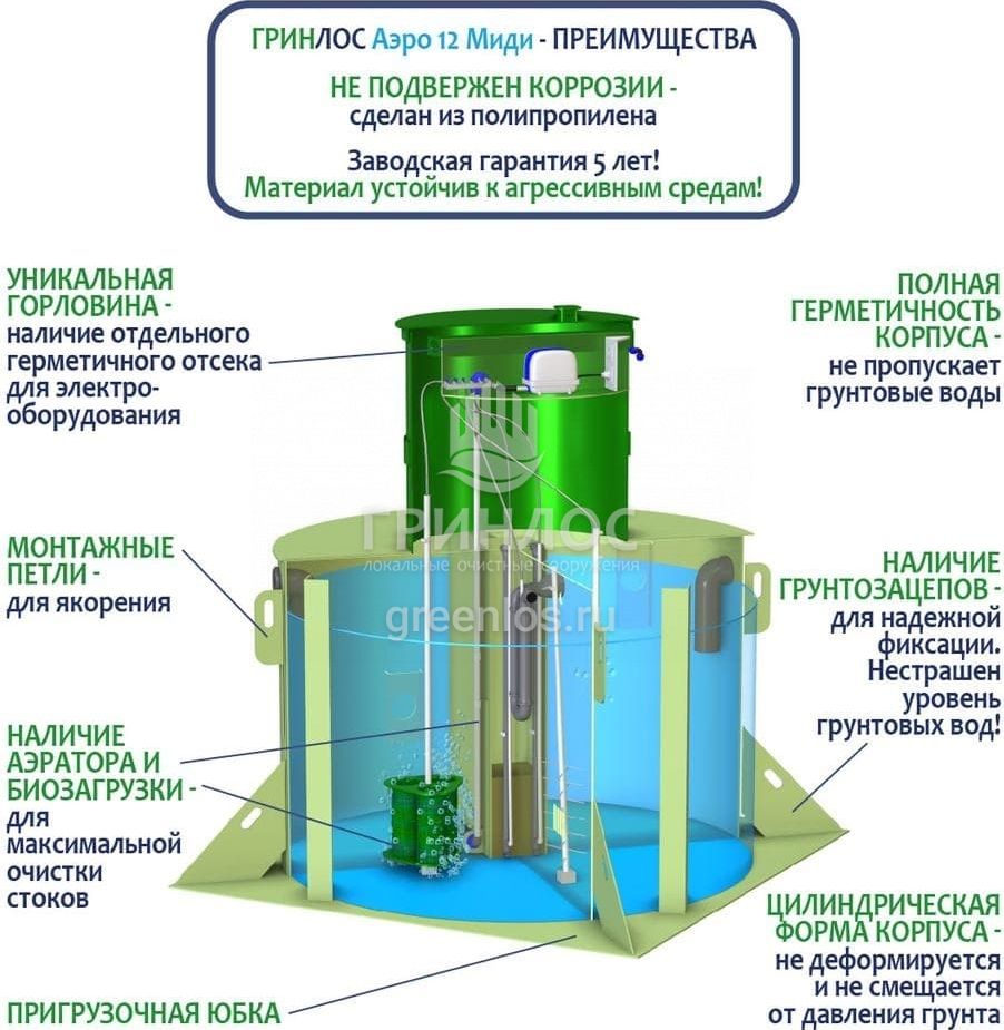 Модификации септика ГРИНЛОС Аэро 12 Миди