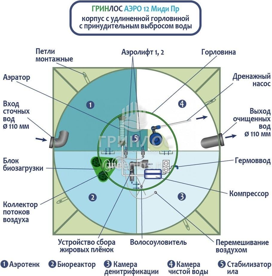Модификации септика ГРИНЛОС Аэро 12 Пр Миди