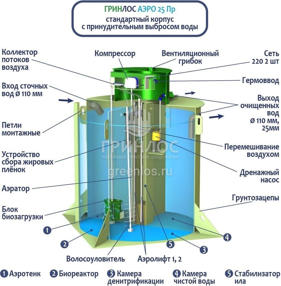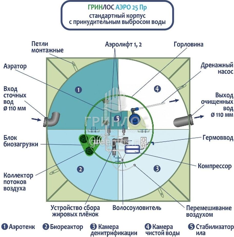 Отличительными особенностями септика ГРИНЛОС Аэро 25 Пр являются: