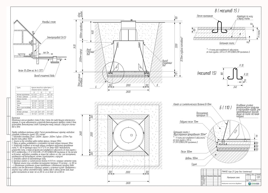 Монтаж септика ГРИНЛОС Аэро 25 Супер Лонг