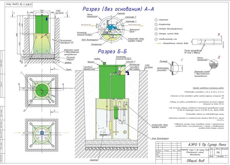 Монтаж септика ГРИНЛОС Аэро 5 Пр Супер Лонг