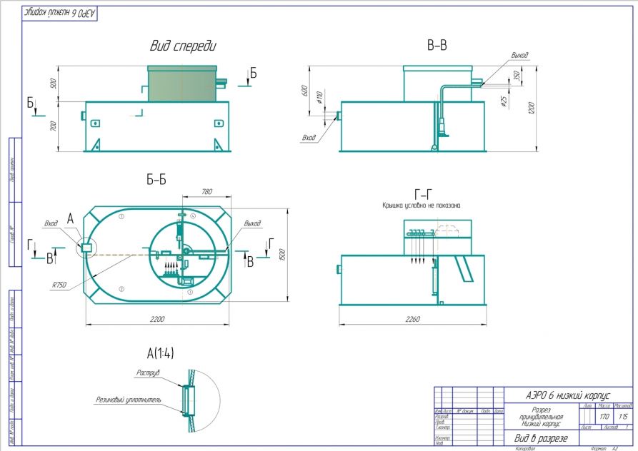 Станция ГРИНЛОС Аэро 6 низкий корпус Пр сконструирована таким образом, что все камеры, в которых происходит аэрация, разделение и осветление стоков объединены в одном корпусе цилиндрической или овальной формы.