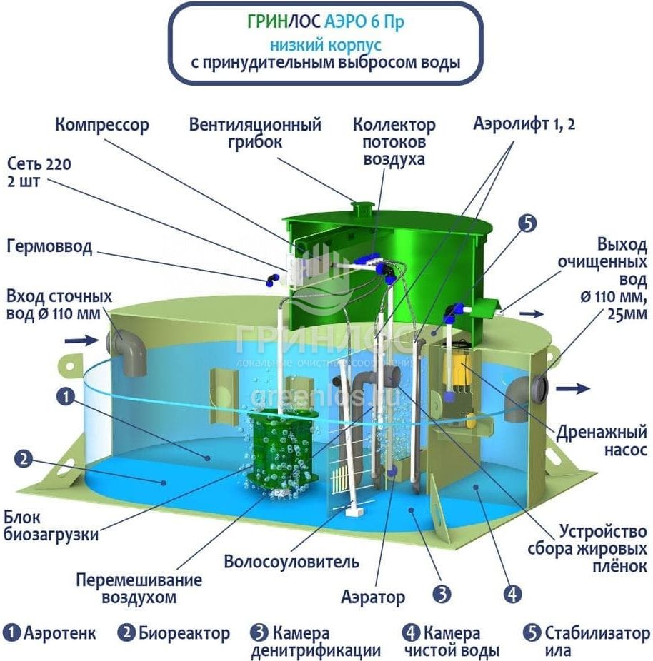 Отличительными особенностями септика ГРИНЛОС Аэро 6 низкий корпус Пр являются: