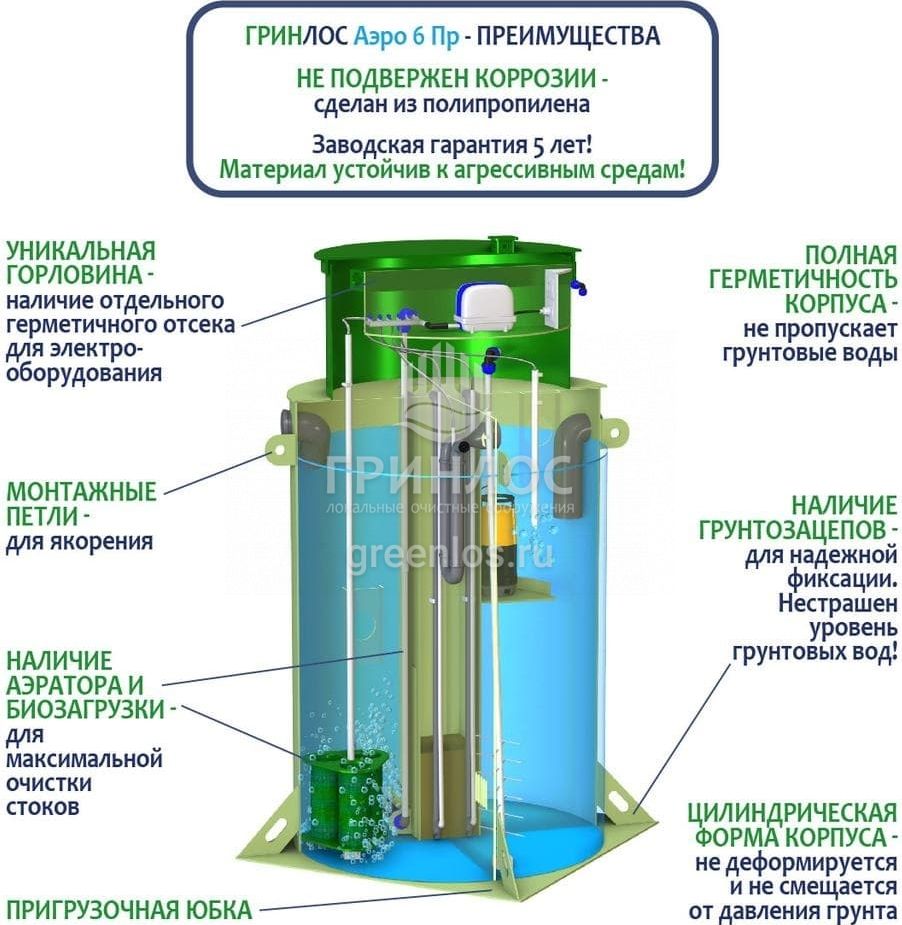 Отличительными особенностями септика ГРИНЛОС Аэро 6 Пр являются: