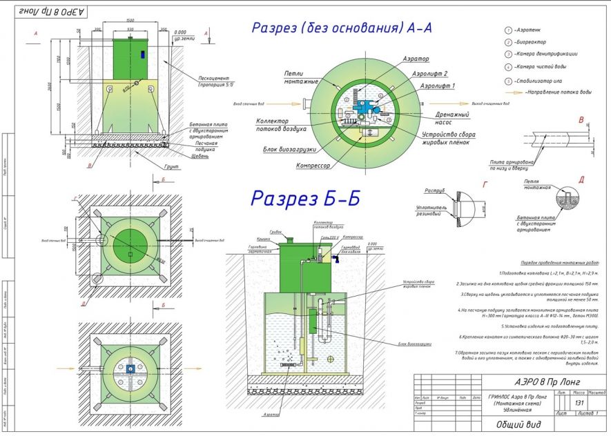 Монтаж септика ГРИНЛОС Аэро 8 Пр Лонг