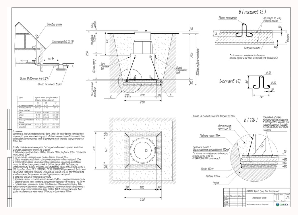 Монтаж септика ГРИНЛОС Аэро 8 Супер Лонг