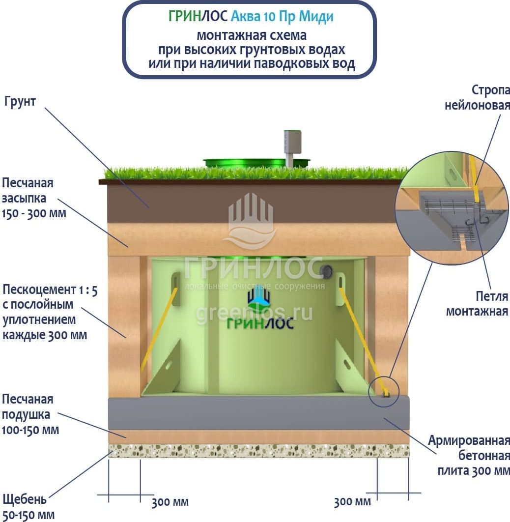 Монтаж септика ГРИНЛОС Аква 10 Пр Миди