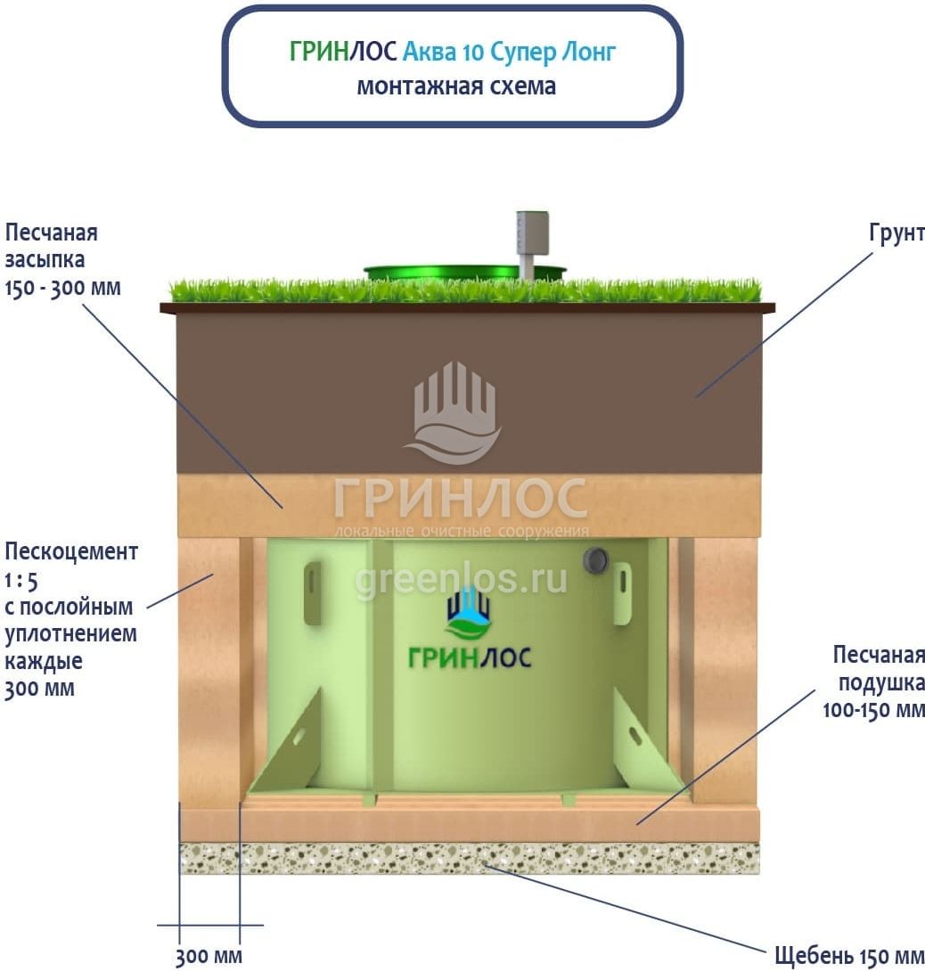 Модификации септика ГРИНЛОС Аква 10 Супер Лонг