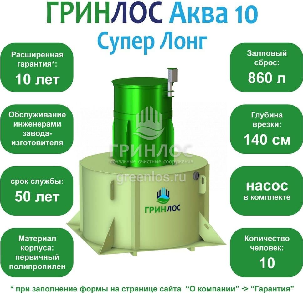 Септик ГРИНЛОС Аква 10 Супер Лонг