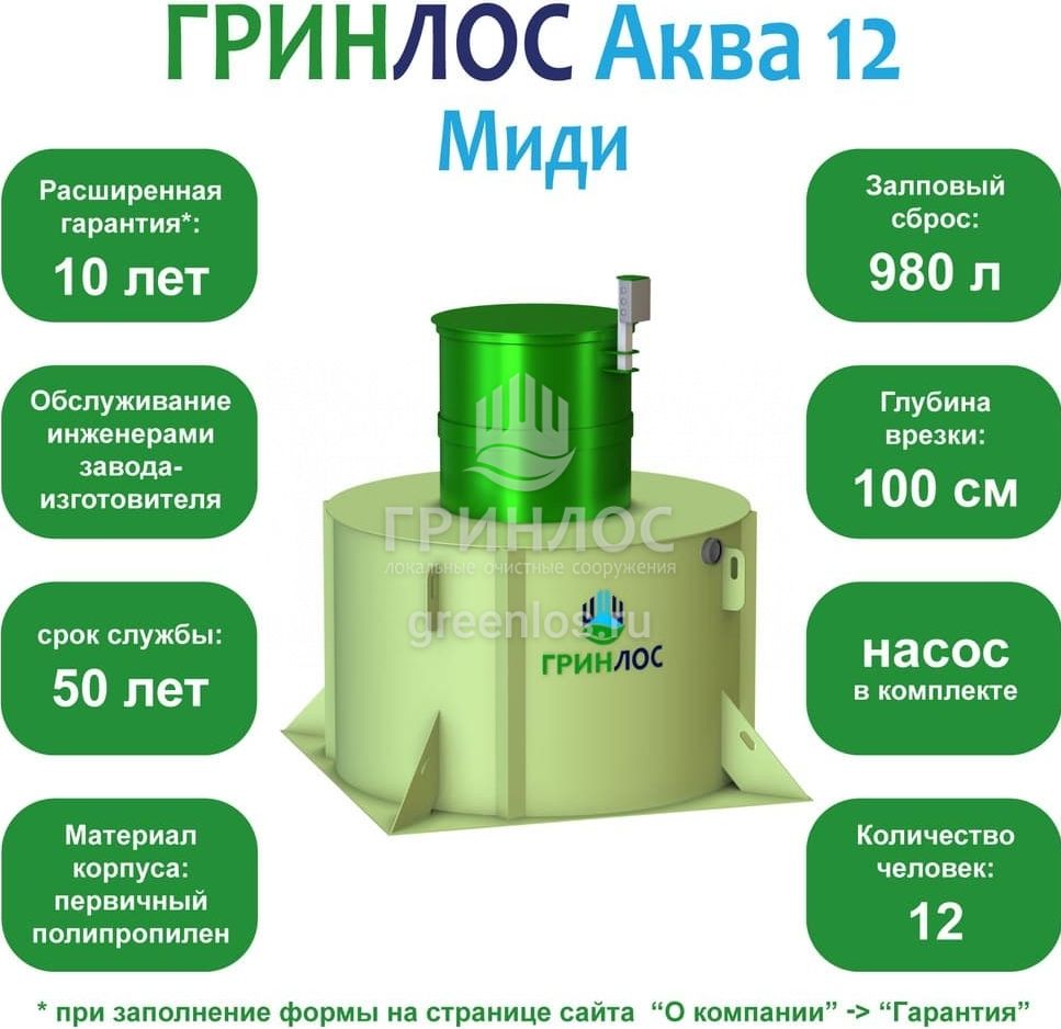 Септик ГРИНЛОС Аква 12 Миди
