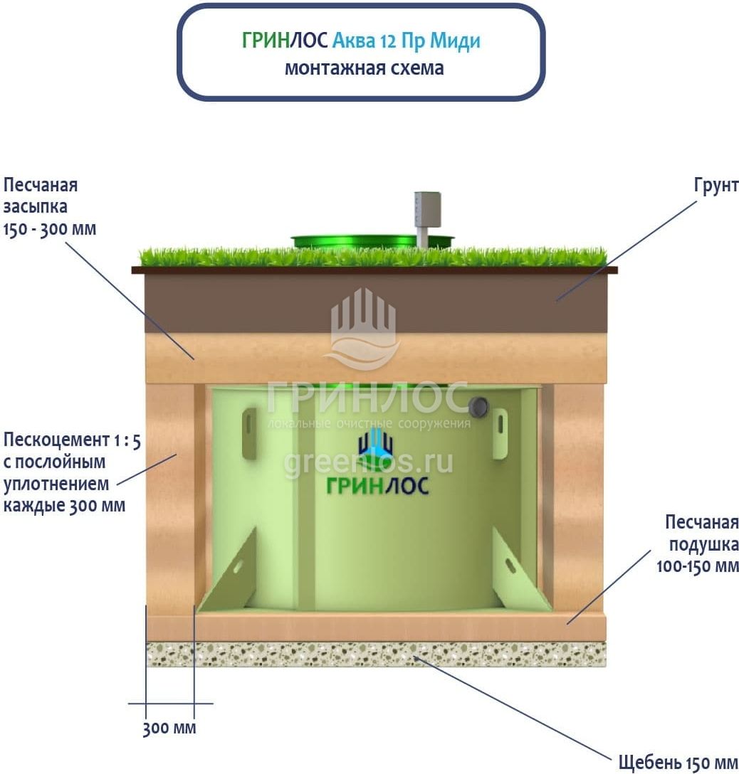 Монтаж септика ГРИНЛОС Аква 12 Пр Миди