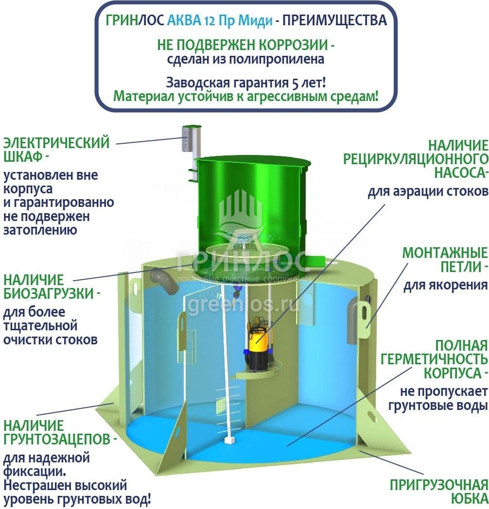 Модификации септика ГРИНЛОС Аква 12 Пр Миди