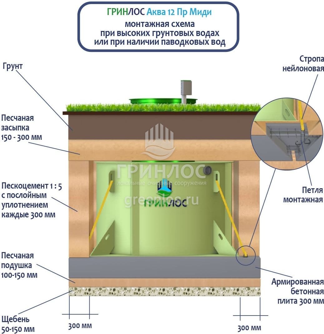 Станции очистки ГРИНЛОС обладают надежными грунтозацепами, действительно предотвращающими всплытие оборудования на обводненных участках.