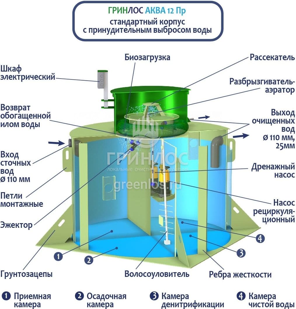 Отличительными особенностями септика ГРИНЛОС Аква 12 Пр являются:
