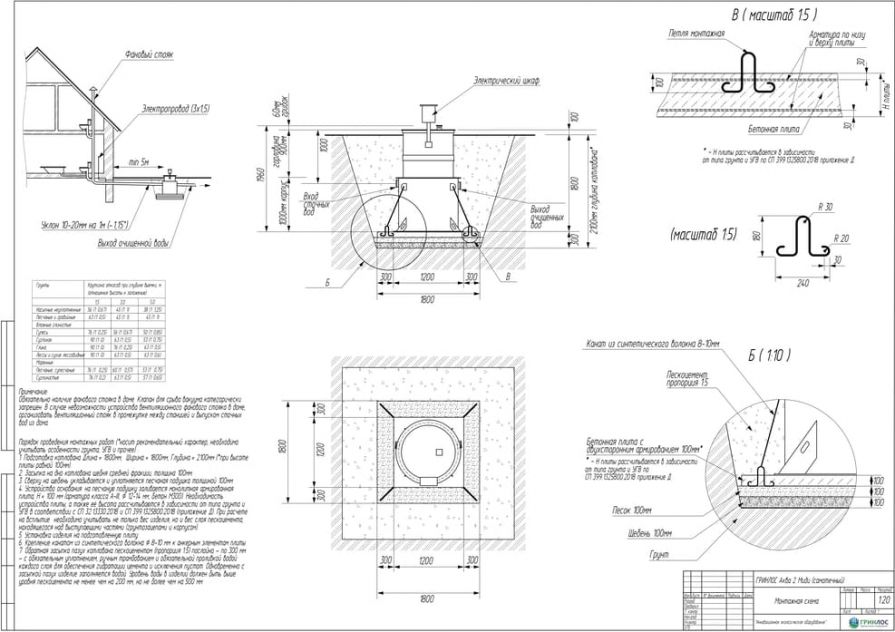 Целесообразно доверить выбор и монтаж оборудования специализированной компании. Перед непосредственным монтажом Оборудования специалисты осуществляют подготовку котлована. Его размеры определяются конструктивными особенностями выбранной модели оборудования. Ознакомиться с данными параметрами можно в приложении к ПС. По боковым стенкам корпуса должно быть сохранено свободное расстояние до грунта не менее 250 мм. Дно котлована нуждается в более тщательной подготовке. Его подвергают выравниванию с последующей засыпкой слоем песка, обладающим толщиной в пределах 10-15 см. Пазухи котлована подвергают обратной засыпке при помощи песка, который послойно поливают водой. Прежде чем приступить к аналогичным работам, емкость оборудования на четверть заполняют водой. Впоследствии количество воды внутри емкости увеличивают соразмерно уровню засыпки песком наружных стенок. Каждые 200 мм песка подвергаются ручному уплотнению.