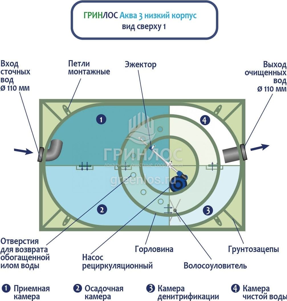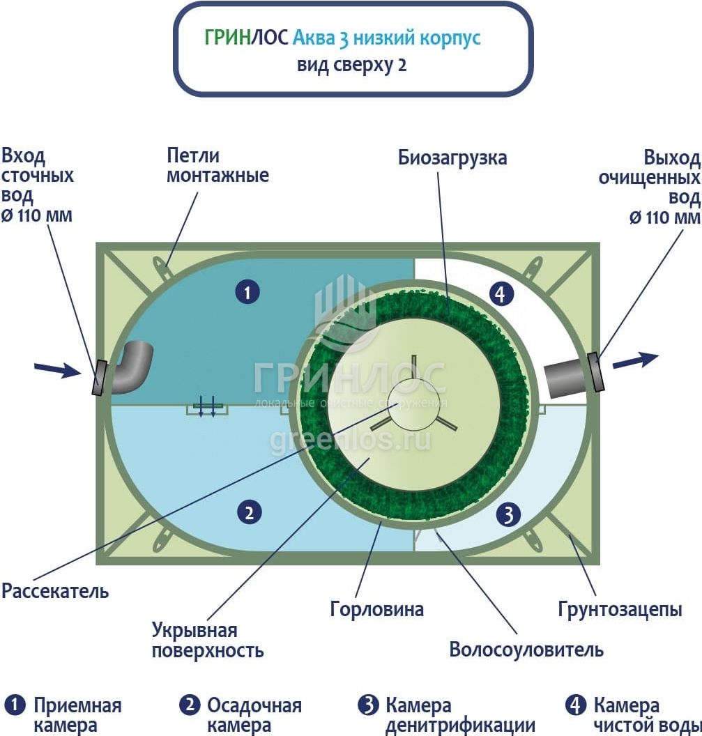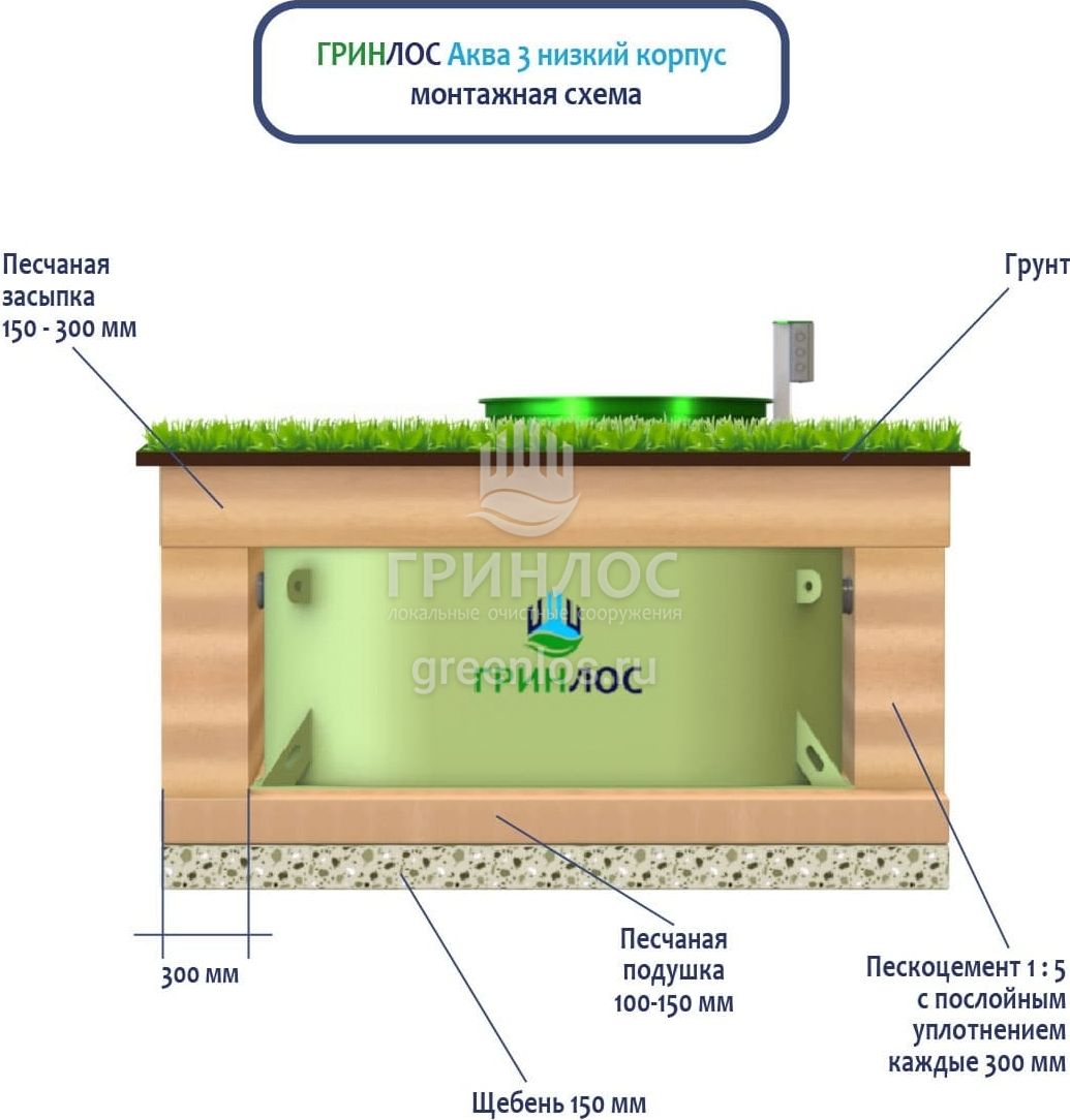 Отличительными особенностями септика ГРИНЛОС Аква 3 низкий корпус являются:
