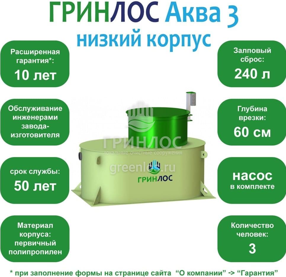 Модификации септика ГРИНЛОС Аква 3 низкий корпус