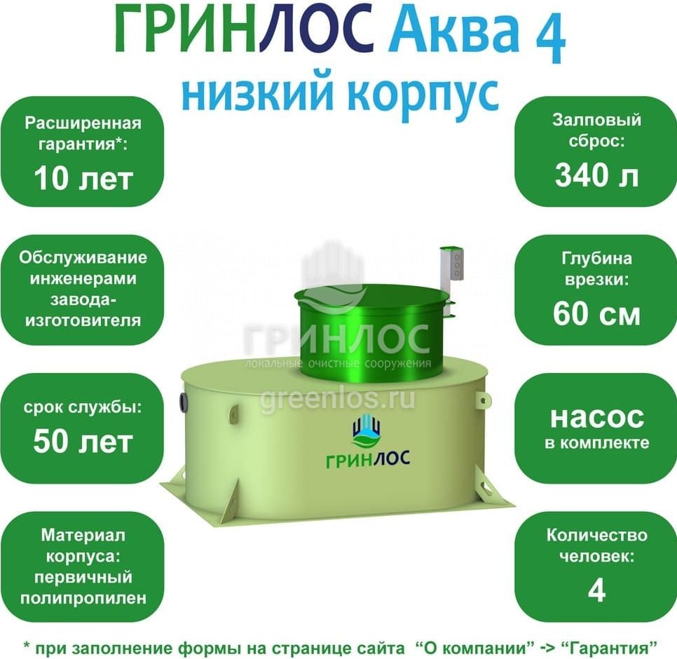 Модификации септика ГРИНЛОС Аква 4 низкий корпус