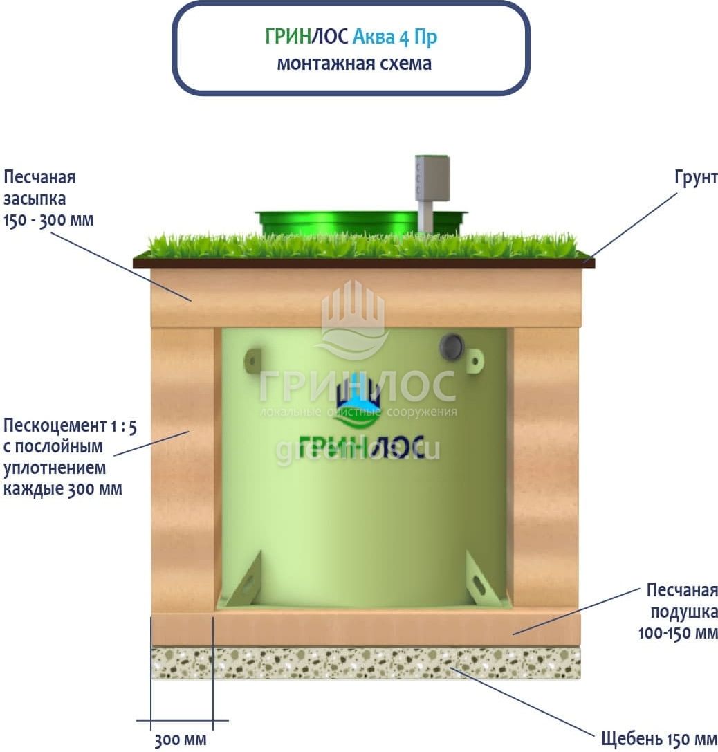 Отличительными особенностями септика ГРИНЛОС Аква 4 Пр являются: