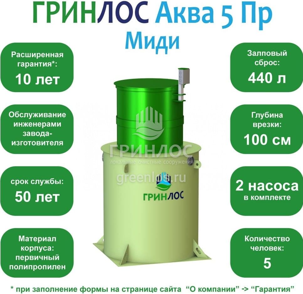 Септик ГРИНЛОС Аква 5 Пр Миди