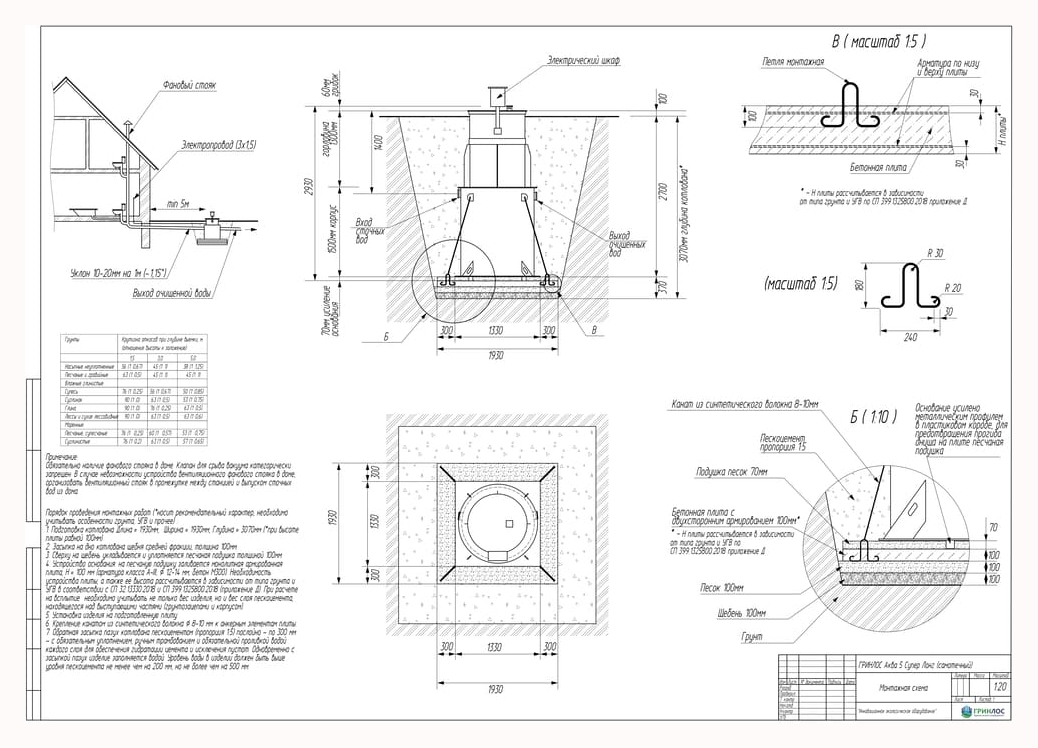 Станции очистки ГРИНЛОС обладают надежными грунтозацепами, действительно предотвращающими всплытие оборудования на обводненных участках.