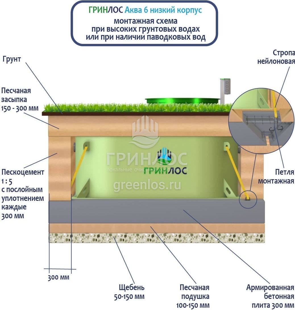 Станции очистки ГРИНЛОС обладают надежными грунтозацепами, действительно предотвращающими всплытие оборудования на обводненных участках.