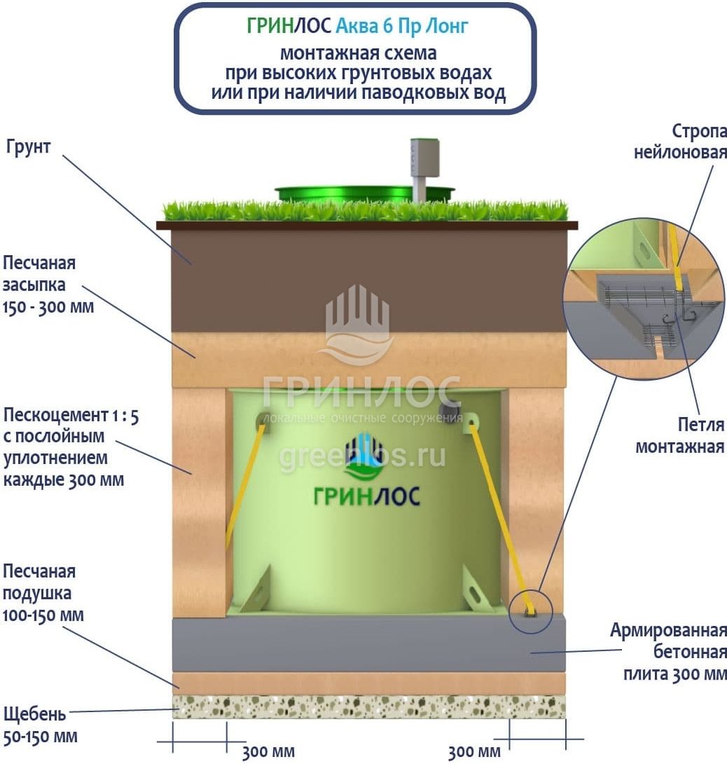 Станции очистки ГРИНЛОС обладают надежными грунтозацепами, действительно предотвращающими всплытие оборудования на обводненных участках.