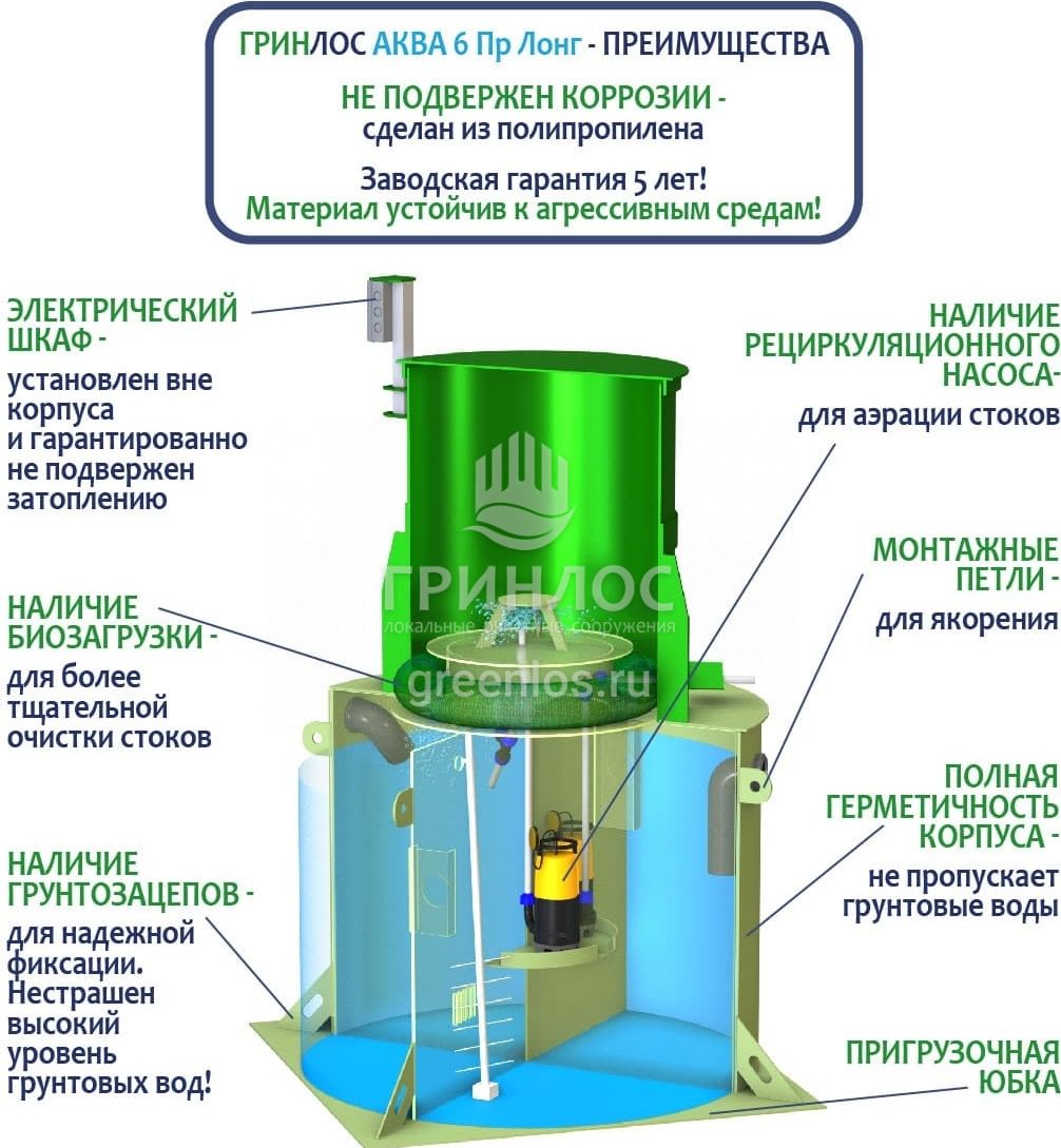 Модификации септика ГРИНЛОС Аква 6 Пр Лонг