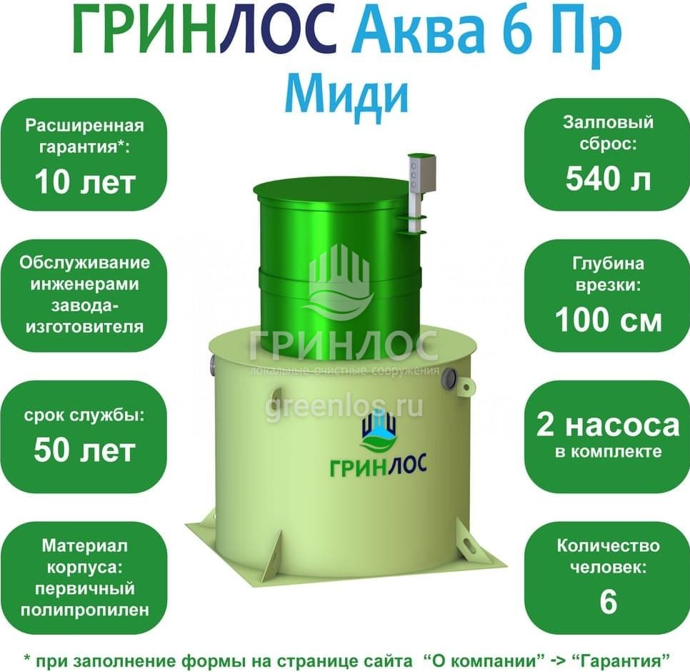 Модификации септика ГРИНЛОС Аква 6 Пр Миди