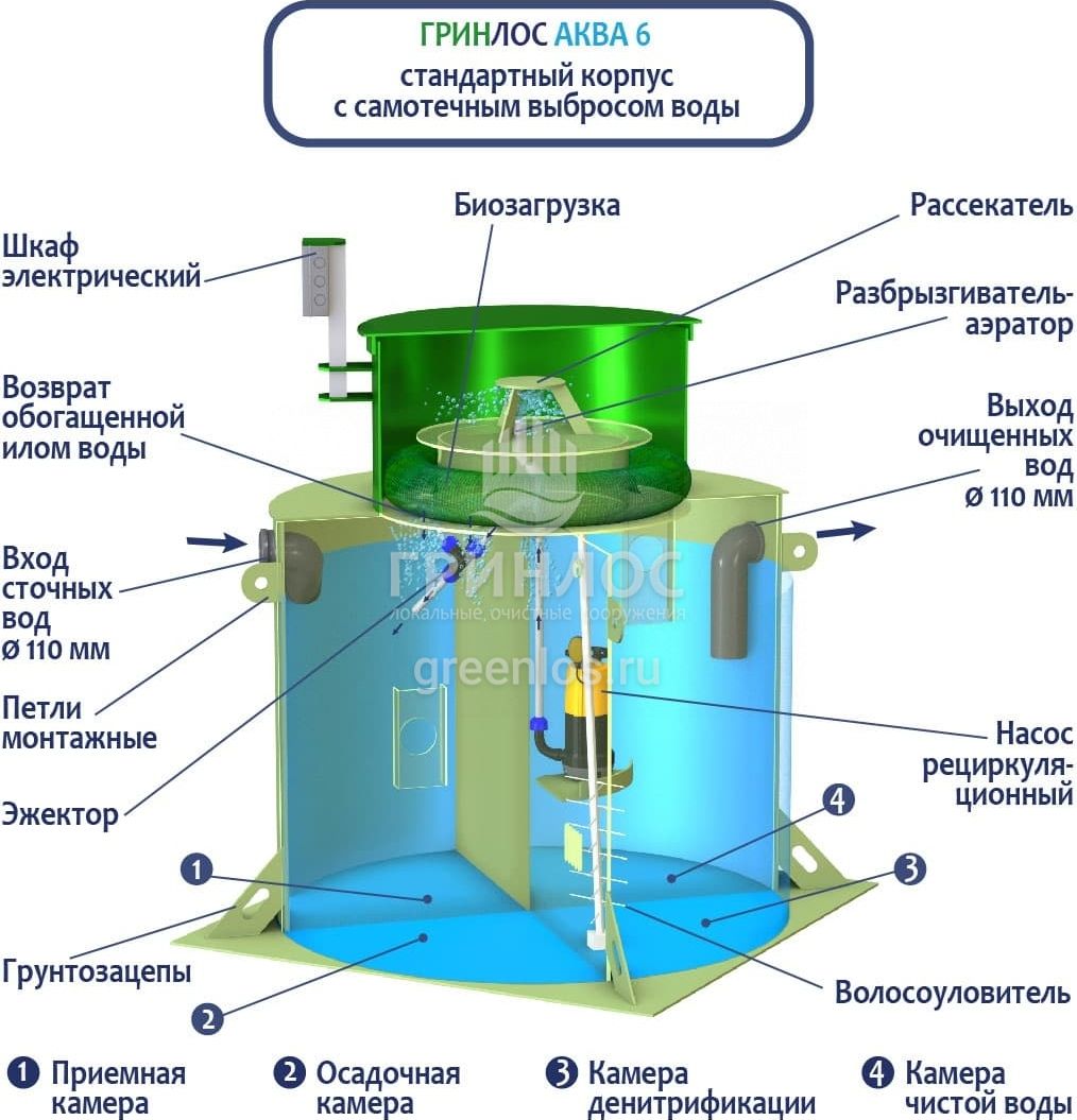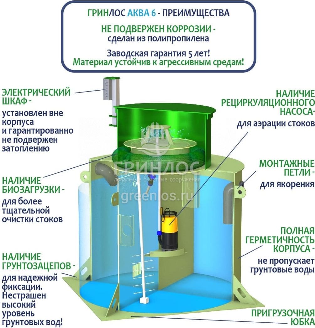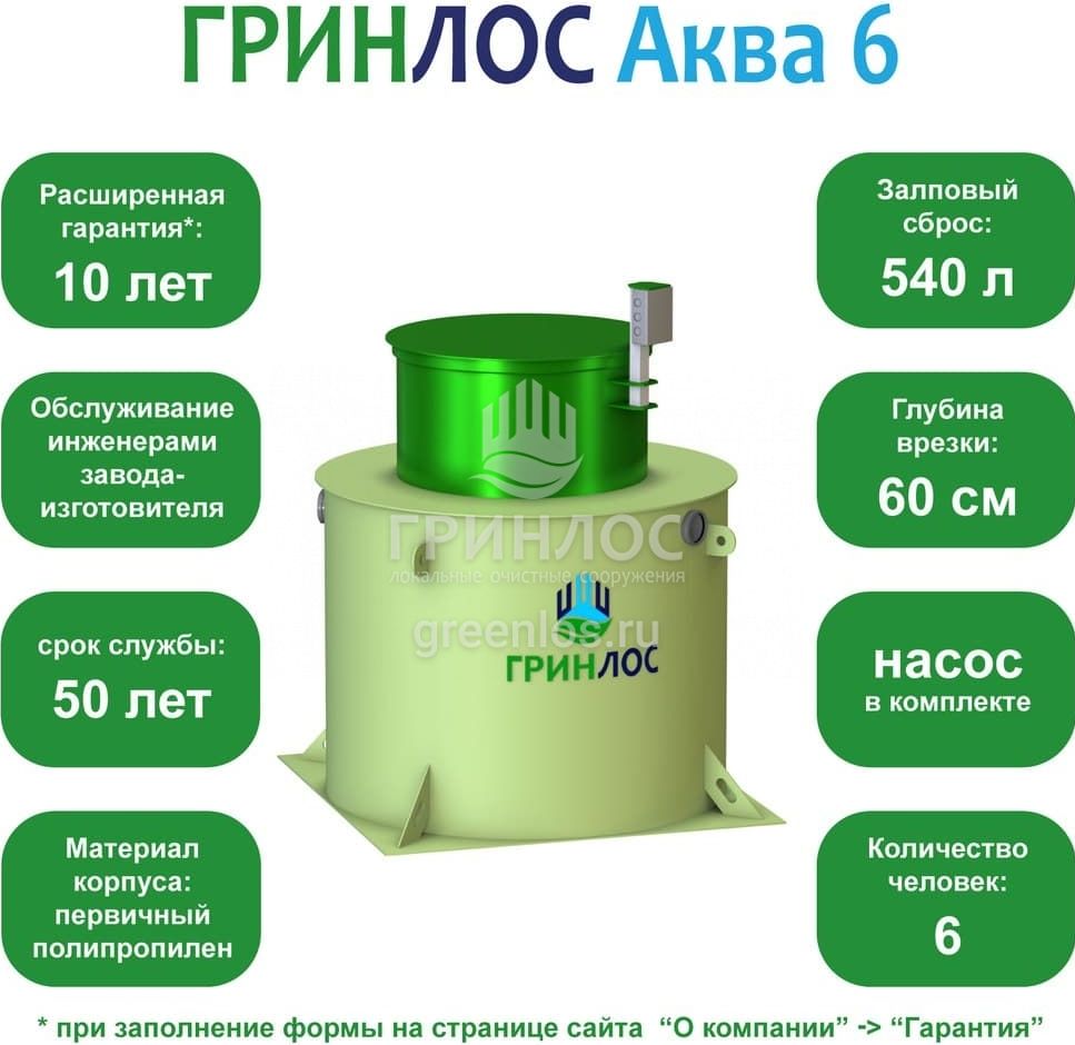 Отличительными особенностями септика ГРИНЛОС Аква 6 являются: