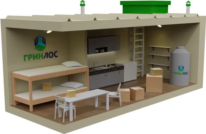Любой бункер ГРИНЛОС — это изделие, проектируемое и выпускаемое по индивидуальному заказу. Бункер можно оснастить любым оборудованием для обеспечения жизнедеятельности по желанию заказчика.