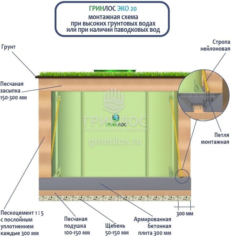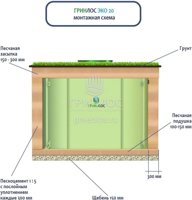 Отличительными особенностями септика ГРИНЛОС Эко 20 являются: