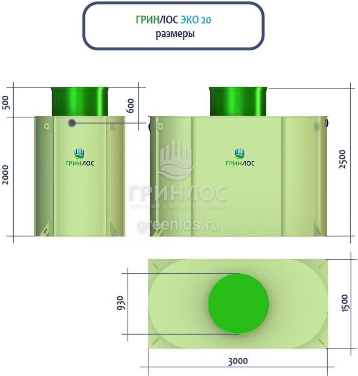 ГРИНЛОС Эко 20 — это энергонезависимый септик с залповым сбросом 1000 л и производительностью 4 м3/сутки, что делает его подходящим для домов, в которых число жильцов не превышает 20 условных пользователей.