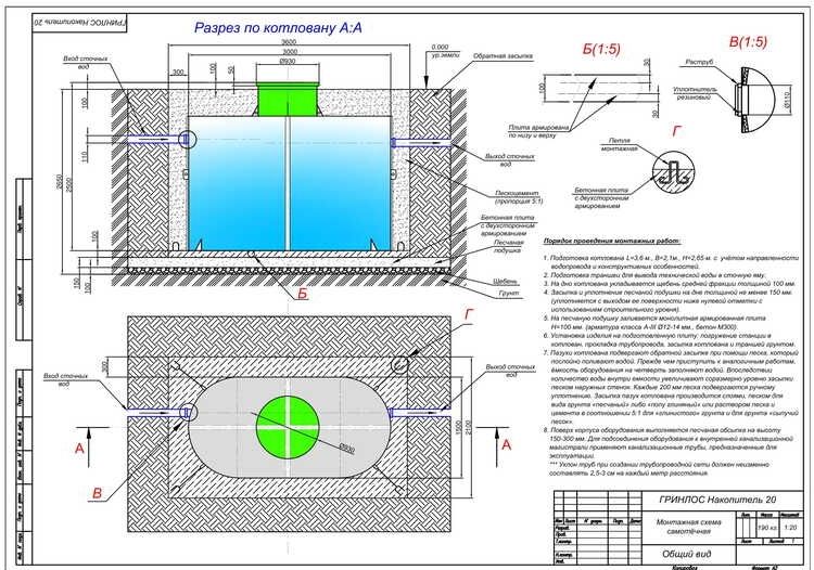 При планировке участка для канализационной системы с ГРИНЛОС Эко 20 следует учитывать следующие рекомендации: