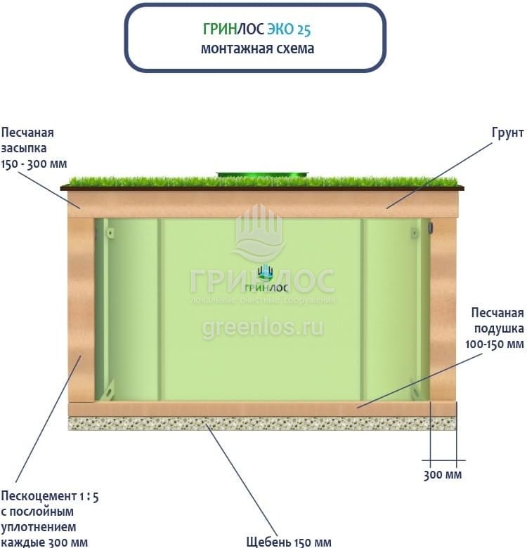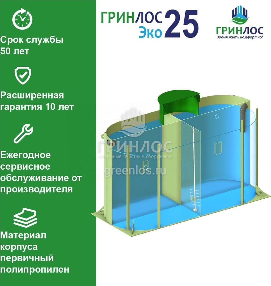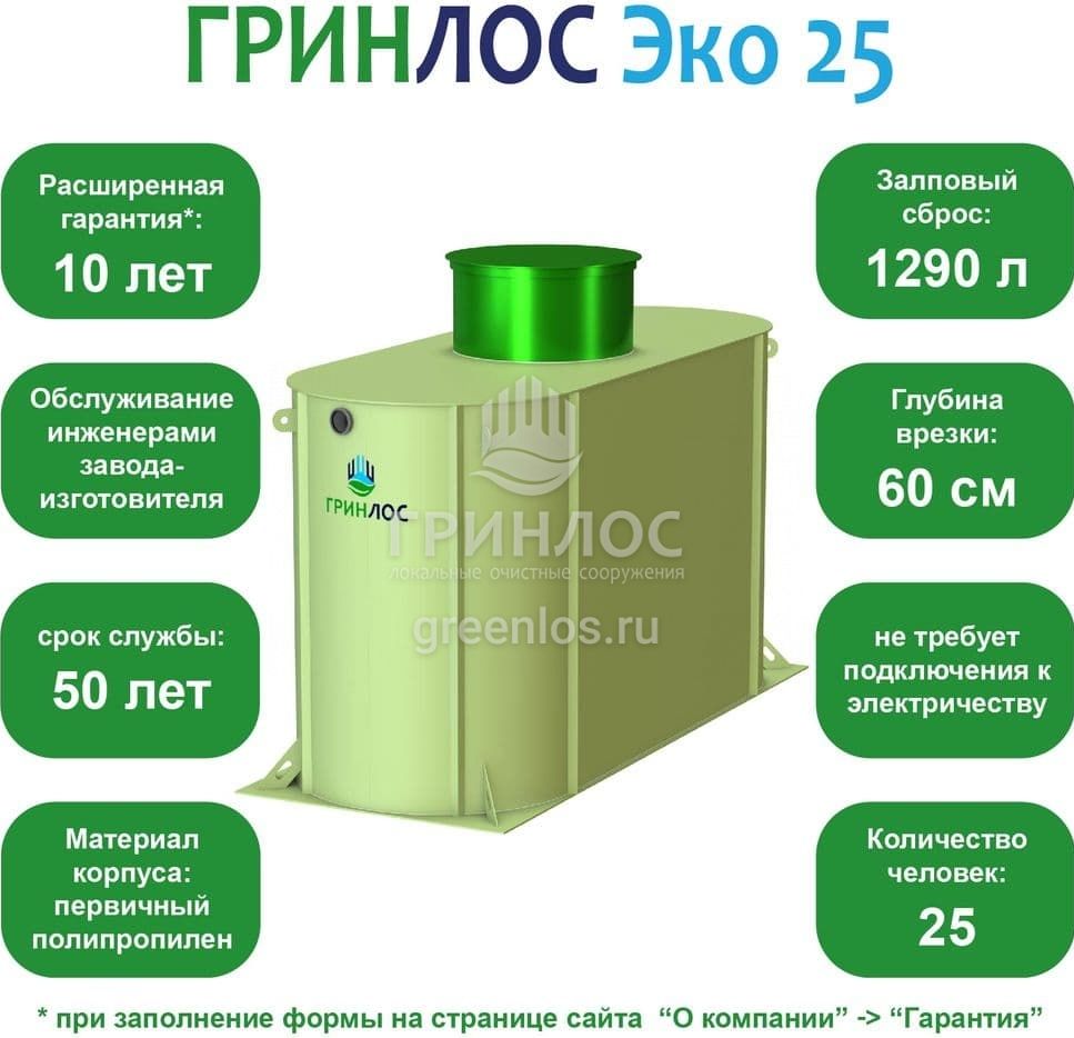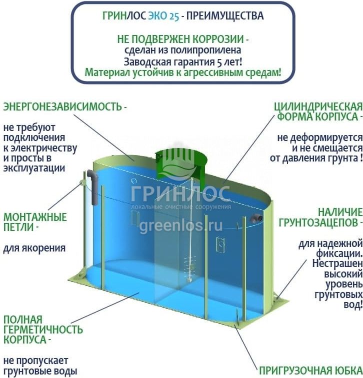 Отличительными особенностями септика ГРИНЛОС Эко 25 являются: