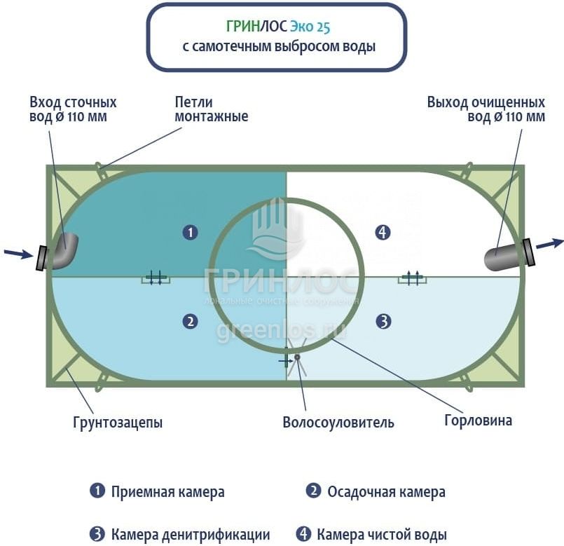 Ёмкости септика ГРИНЛОС Эко 25 состоят из четырех отсеков: