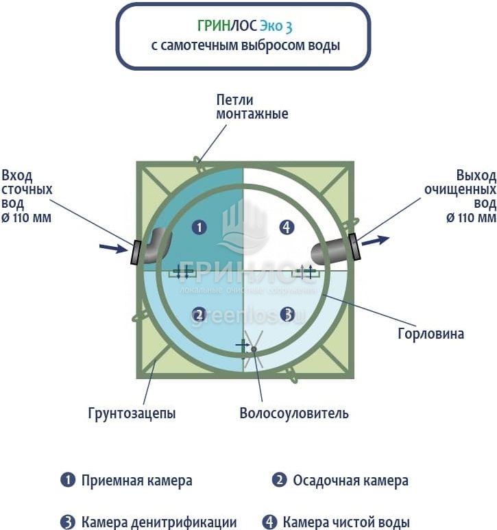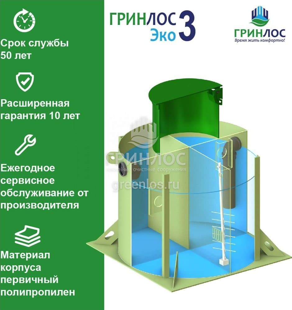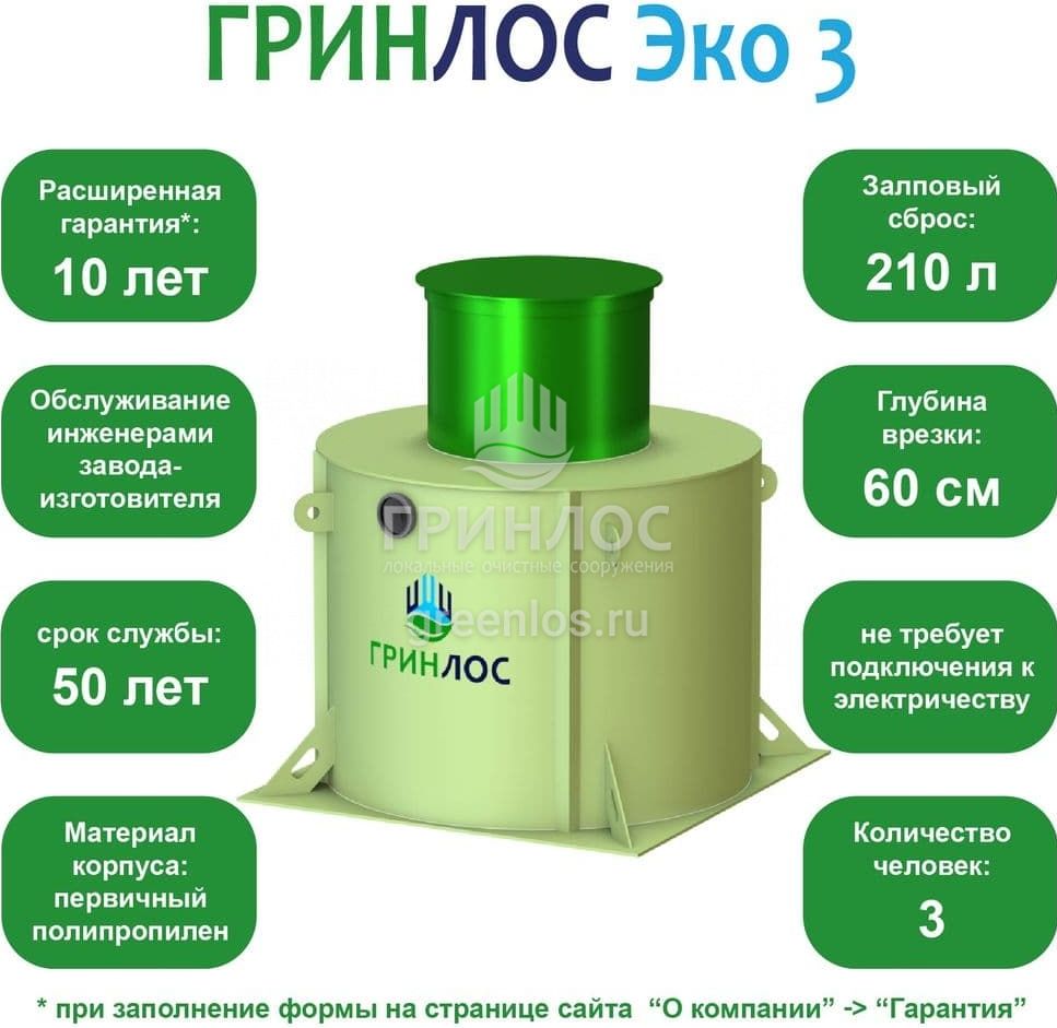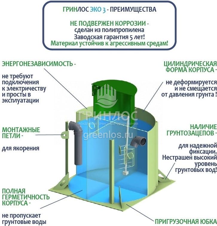 Отличительными особенностями септика ГРИНЛОС Эко 3 являются: